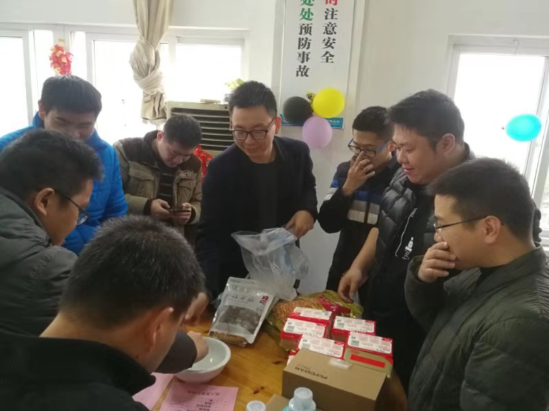 在拔河活动圆满落下帷幕之后,10:30公司为员工提供福利而举办的“迎新春欢乐博饼活动”也在公司员工餐厅红红火火的展开了。