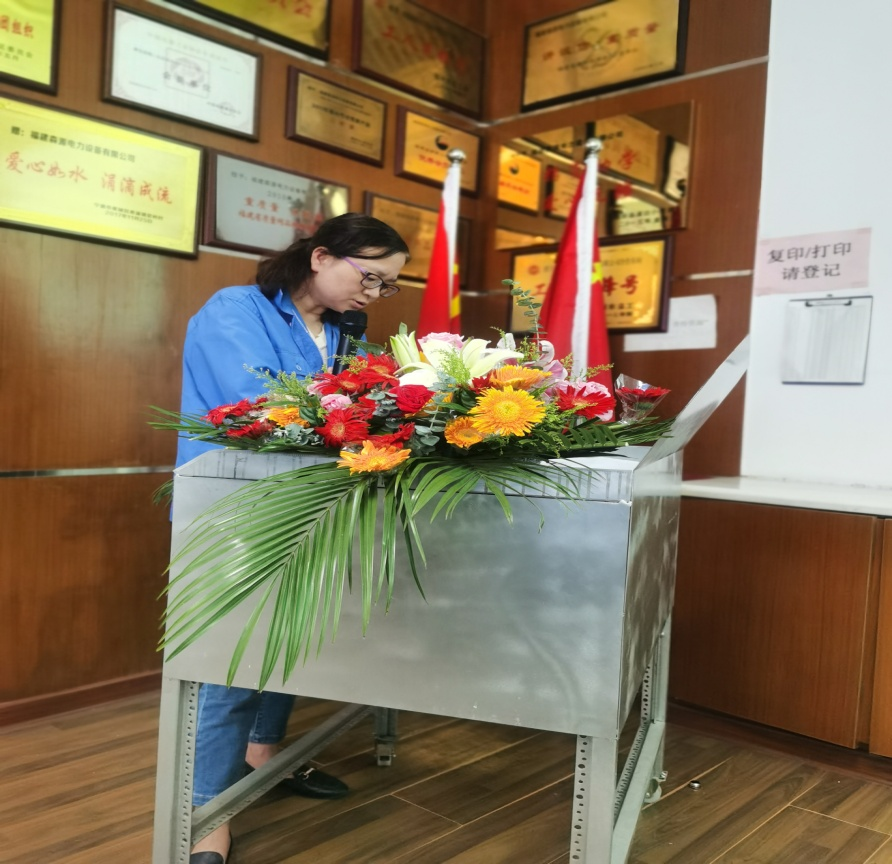 生产部陈显芝副总经理就公司产值做汇报并倡议杜绝浪费、降低成本提高生产工艺。